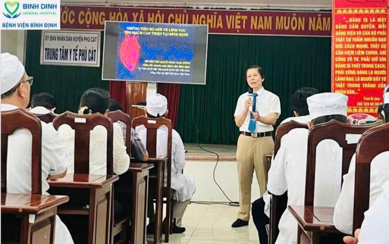 BỆNH VIỆN BÌNH ĐỊNH VÀ TRUNG TÂM Y TẾ HUYỆN PHÙ CÁT PHỐI HỢP TỔ CHỨC HỘI THẢO KHOA HỌC CHUYÊN SÂU VỀ TIM MẠCH CAN THIỆP VÀ CÁC LĨNH VỰC MŨI NHỌN.