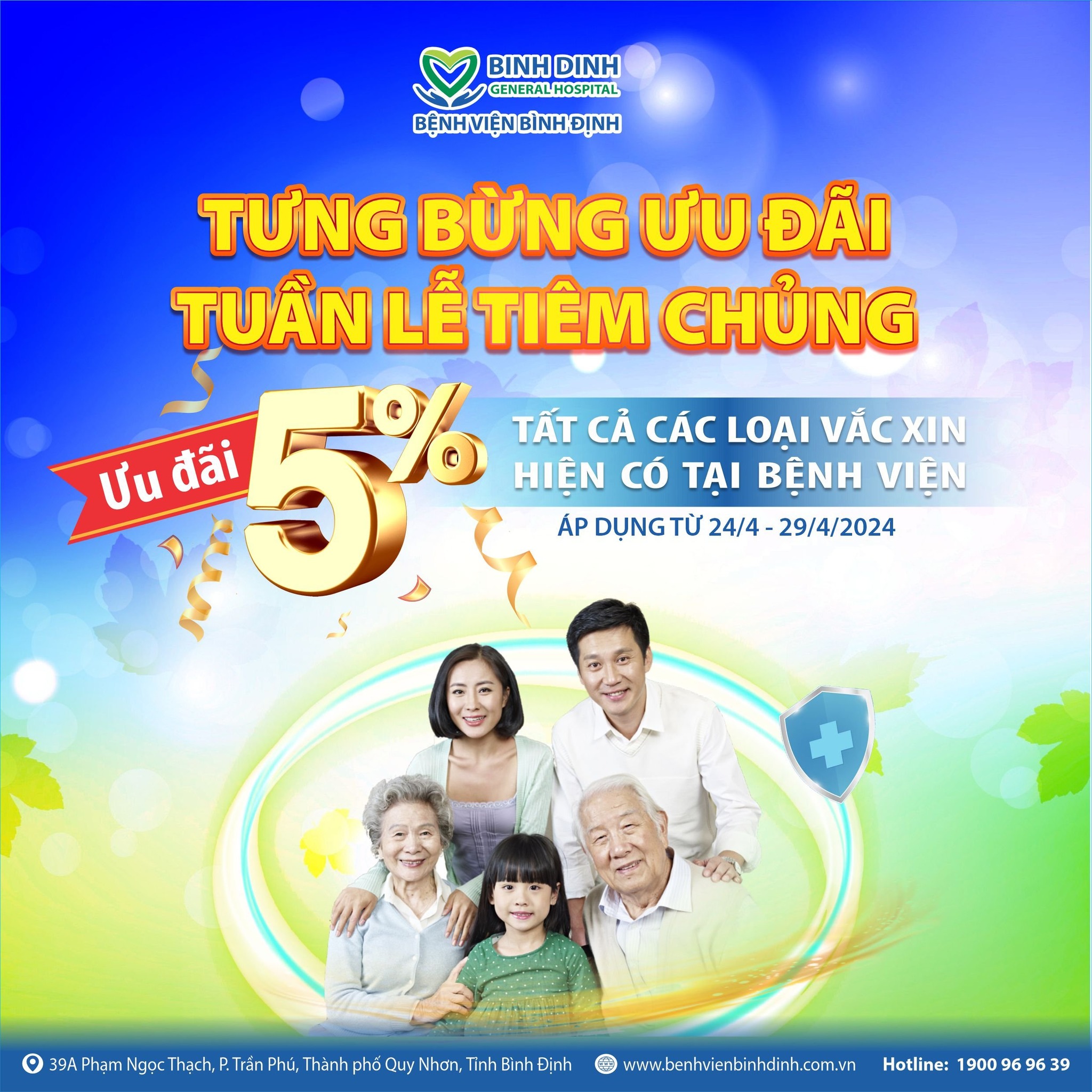 Nhân tuần lễ Tiêm chủng thế giới, Bệnh viện Bình Định triển khai chương trình ưu đãi giá vắc xin cụ thể như sau: